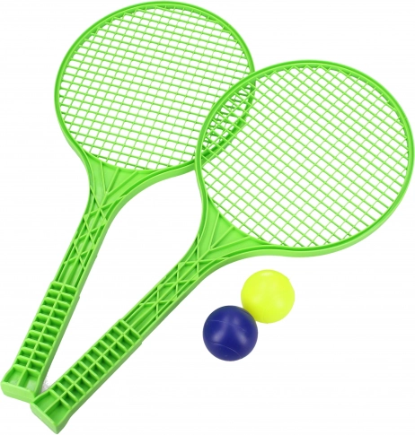 Szórakoztató puha tenisz készlet, amely alkalmas kertbe és vízpartra is. Tartalmaz 2 ütőt, 49 cm hosszú, valamint 2 puha labdát a biztonságos játékhoz. Elérhető 2 színváltozatban – zöld és sárga.