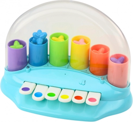 A kék színű, felpattanó csillagokkal ellátott zongora különleges játék, amely a legkisebbeket is bevonja a zene és a fények varázslatos világába. A gyermek biztonságát és fejlődését szem előtt tartva tervezett zongora nemcsak hangokat kínál, hanem látványos, színes csillagok formájában vizuális effekteket is, amelyek minden billentyűlenyomáskor a levegőbe „ugranak”.