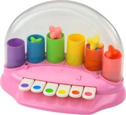 A rózsaszín gyerek zongorácska egyedülállóan ötvözi a zenét és a vizuális effekteket. Minden billentyű melodikus hangot ad, és aktivál egy mechanizmust, amely felragyogtatja és megpörgeti az színes csillagokat az átlátszó kupola alatt. A lehulló csillagokat speciális pálya vezeti, így minden új hangnál új, elbűvölő hatás jön létre.