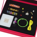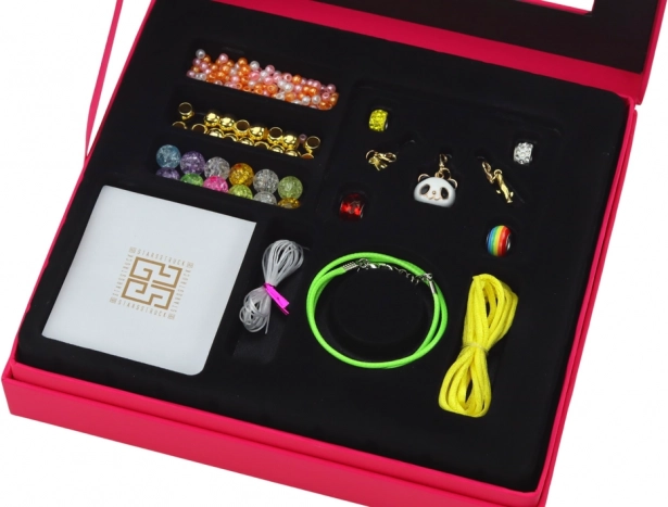 Kreatív karkötőkészítő szett gyerekeknek, amely megnyitja a fantázia és a stílus világát. Tartalmaz gyöngyöket, medálokat, horgászzsinórt, sárga zsinórt és egy nyakláncot, amely dupla karkötőként is hordható. Remek ajándék elegáns rózsaszín dobozban, fejleszti a kreativitást, a finommotorikát és az esztétikai érzéket.