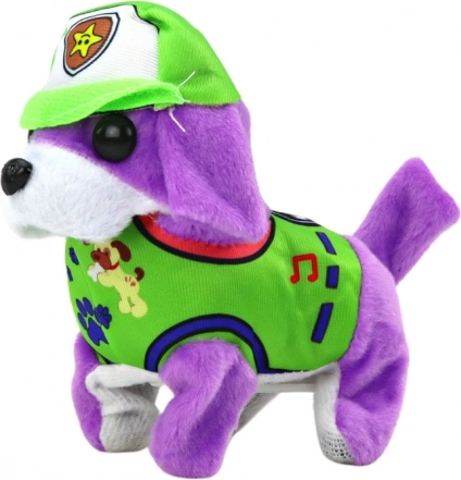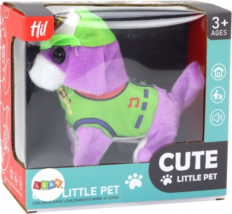 Bemutatjuk a bájos interaktív plüss kutyust, amely gyermeke kedvenc társává válik! Ez az aranyos kutyus lila színű, zöld sapkát és ruhát visel. Kompakt méretének köszönhetően bárhová könnyedén magával viheti. Bekapcsolás után vidám ugatással és mozgással kel életre, ami azonnal felkelti a legkisebbek figyelmét. Interaktív viselkedése játékra és nevetésre ösztönzi a gyerekeket mókás mozdulataival.