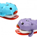 - Szórakoztató mozgás a vízen: felhúzós mechanizmus „répával” a víziló szájában