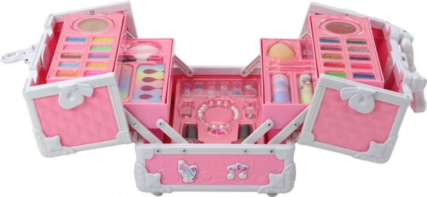 Ez az elegáns kozmetikai bőrönd átgondolt dizájnjával és gazdag felszereltségével nyűgözi le a gyerekeket. Kinyitáskor két szint csúszik elő, tele színes kozmetikai kiegészítőkkel és ékszerekkel, amelyek támogatják a kreativitást, a finommotorikát és az önkifejezést. Kompakt méreteinek köszönhetően a gyerekek bárhová könnyen magukkal vihetik.