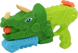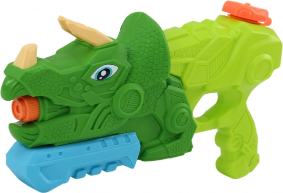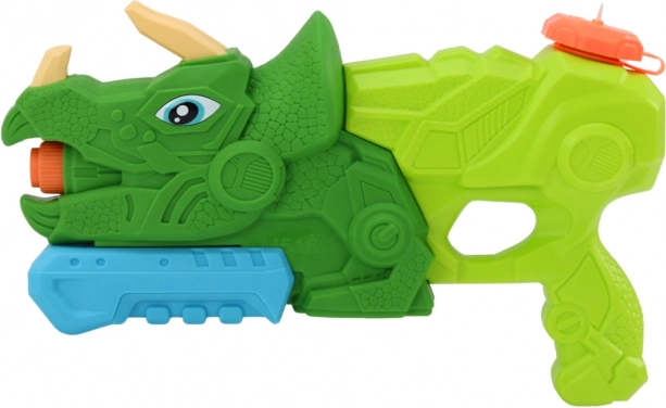 Vízpisztoly dinoszaurusz Triceratops nagyszerű választás a gyermekek vízi csatáihoz. Ez a zöld dinoszaurusz narancssárga és kék részletekkel a szórakozást és biztonságot tartja szem előtt a gyermekek számára. A tartály kapacitása körülbelül 1000 ml, és a pumpáló fogantyú segítségével víz lövell ki a dinoszaurusz szájából.