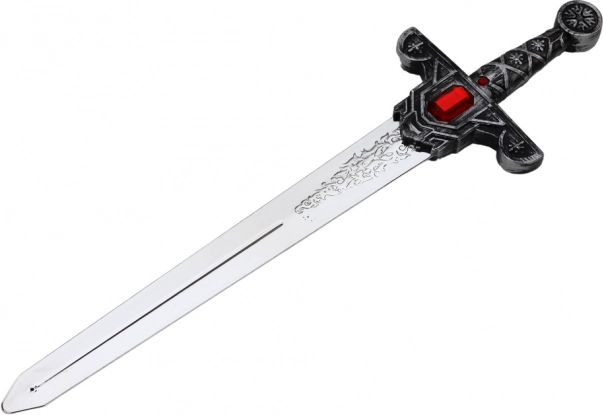 Stílusos kard ezüst pengével és díszített markolattal – remek kiegészítő a kicsi lovagok biztonságos, fantáziadús játékához.