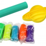 - Komplett felszerelés: 8 forma, 5 gyurmaszín és nyújtófa.