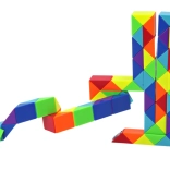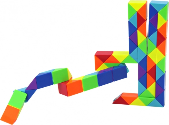 A Varázs kígyó egy színes logikai kirakó, amelyet tetszés szerint csavarhatsz, hajlíthatsz és számtalan egyedi formává állíthatsz. A szilárd illesztések biztosítják a sima forgást és a stabilitást, így az építés intuitív és szórakoztató. A vidám színeknek köszönhetően minden alkotás nemcsak kreatív kihívás, hanem látványos dekoráció is.