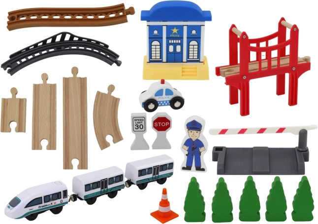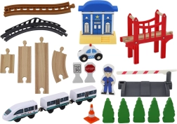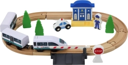 Ez a minőségi fa vonatpálya a vasúti kalandok világát hozza el a gyerekeknek. A gazdag felszereltségnek – többek között hídnak, rendőrőrsnek, sorompónak, STOP táblának és rendőr figurának – köszönhetően saját történeteket alkothatnak és fejleszthetik kreativitásukat. A stabil fa sínek lehetővé teszik különféle körpályák építését, összhosszuk akár 3,2 m.