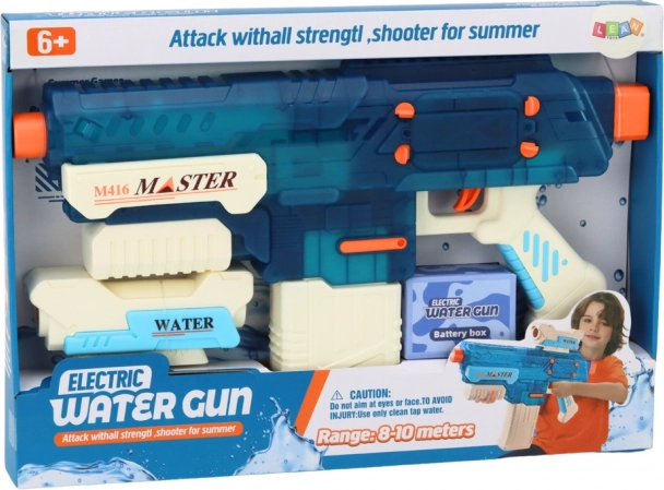A vízipisztolyt egy 7,4 V 500 mAh-s akkumulátor hajtja, amely a csomag része. Az akkumulátorhoz töltőt mellékelünk.
