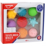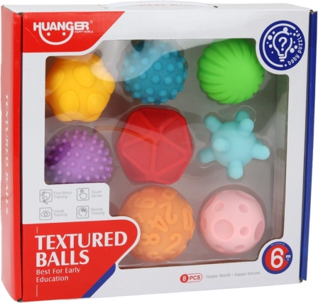 Készült puha és biztonságos anyagból, a labdák ideálisak a markolásra, dobásra és gurításra. Különböző textúráik lehetővé teszik a gyermekek számára, hogy felfedezzék a sima és a durva felületek közötti különbségeket és játék közben tanuljanak.