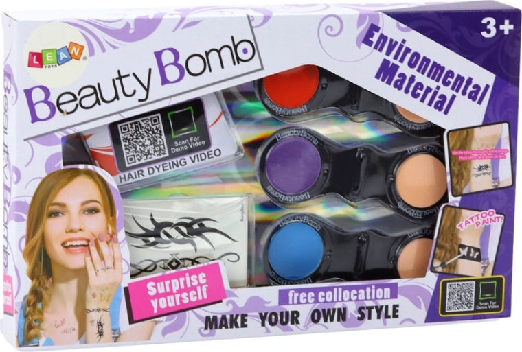 Fedezze fel a művészet varázslatos világát szépségkészletünkkel, amely 12 tetováló dizájnt tartalmazó kártyát tartalmaz, lehetővé téve gyermeke számára, hogy kifejezze személyiségét és stílusát. Tegye gyermekei haját élénk, ideiglenes színekkel a 3 színes árnyalat szivacsos segítségével. Ez a készlet nemcsak szórakozást és kreativitást nyújt, hanem a gyermek művészi képességeit és képzeletét is fejleszti.