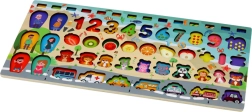 A készlet térbeli fadarabokat tartalmaz, amelyeket a gyermek a táblán lévő megfelelő helyekhez illeszthet. Ez nemcsak szórakoztató tevékenység, hanem a kézügyesség és a szem-kéz koordináció fejlesztésének módja is.