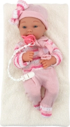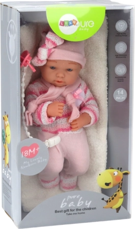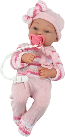 Aranyos bébi baba rózsaszín öltözékben, amely minden kis gondoskodónak örömet szerez. Mozgatható karokkal és lábakkal, élethű arcrészletekkel és praktikus kiegészítőkkel, köztük zsinórra erősített cumival és pihe-puha takaróval. Biztonságos anyagokból készült, 18 hónapos kortól ajánlott.