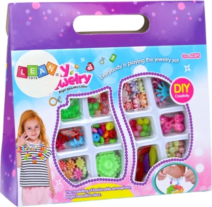 Ez a kreatív műanyag gyöngykészlet remek választás az ékszerek és a kézműves projektek kis rajongóinak. A formák, méretek és színek gazdag választéka lehetővé teszi, hogy a gyerekek saját ékszereiket tervezzék és készítsék el – a karkötőktől és nyakláncoktól kezdve a medálokig és láncokig. Az alkotás szórakoztató, fejleszti a fantáziát és támogatja a koncentrációt.