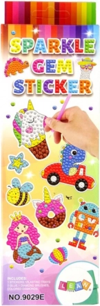 Változtassa a szabadidőt kreatív szórakozássá ezzel a gyémántfestő matricakészlettel. A gyerekek színes kövecskékkel készítenek csillogó képeket az előre elkészített sablonokra – így gyakorolják a türelmet, a pontosságot, valamint a színek és a kompozíció iránti érzéket. Ideális egy nyugodt délutánra otthon, vagy eredeti ajándéknak.