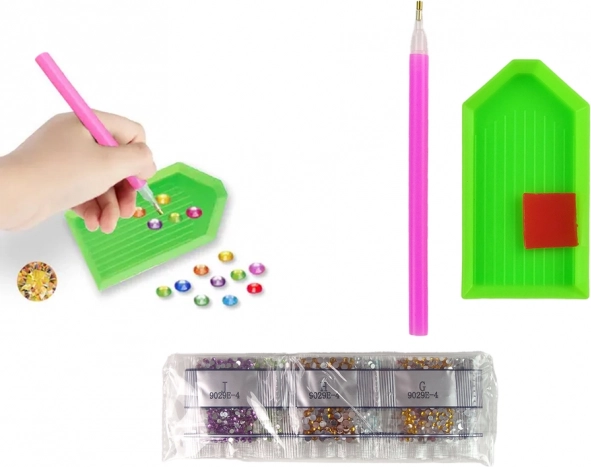 Minden szükséges eszköz a csomagban található: speciális toll, viasz és tálca megkönnyíti a kövecskék felvételét és elhelyezését, így a teljesen kezdők is bátran belevághatnak. A különböző motívumoknak és nehézségi szinteknek köszönhetően mindenki megtalálja a saját stílusát, a kész matricák pedig gyönyörűen fognak csillogni a füzeteken, naplókban vagy ajándékokon.