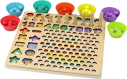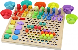 A vidám horgászos játék során a kicsi részleteket párosít, és fejleszti szem-kéz koordinációját is. A gyöngyök vagy karikák oszlopokra rendezése közben megismerkedik a számok értékével és megtanul 10-ig számolni, ami a számlálás gyakorlására is kiváló. A térbeli formák kirakása tovább fejleszti az észlelést és a térbeli gondolkodást.