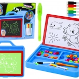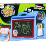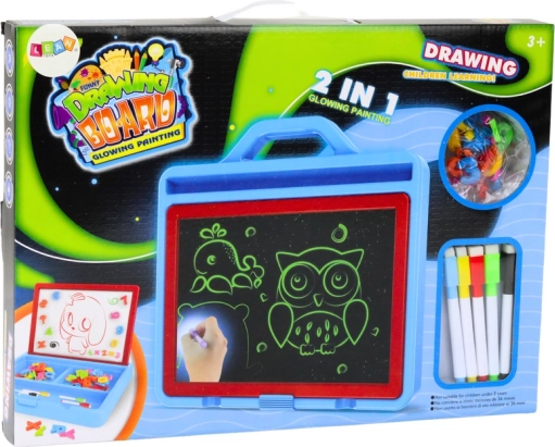 Ez a nagy rajztábla ideális a kis művészeknek és az óvodásoknak. Lehetővé teszi a rajzolást varázs-törölhető filcekkel és egy speciális LED fényceruzával, amely sötétített helyiségben beragyogtatja a képeket. A gyerekek játékos formában gyakorolhatják az első betűket, számokat és egyszerű műveleteket.