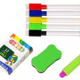 Az egyik oldal krétás, a klasszikus rajzoláshoz, a másik törölhető, színes filcekhez – ideális a kreativitáshoz és az iskolai készségek gyakorlásához.
