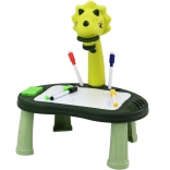 Ez a dinoszaurusz alakú gyerekprojektor képeket vetít a fehér felületre, így a gyerekek könnyedén átrajzolhatnak és megtanulhatnak rajzolni. A forgatható tárcsák összesen 24 motívumot kínálnak, amelyek inspirálnak képek és kollázsok készítésére. A masszív, alacsony asztalka kényelmes ülést biztosít, és játéktérként is szolgál.