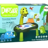 Gyerek dinoszauruszos rajzprojektor 2 az 1-ben asztalkával és társasjátékokkal