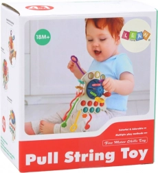 A játék 6 különböző színű és textúrájú zsinórt tartalmaz, amelyek nemcsak játékra csábítanak, de fejlesztik a tapintási érzékelést és a koordinációt is. Néhány zsinór könnyen húzható, míg mások nagyobb erőfeszítést igényelnek, ami kihívást jelent a kis kezek számára.
