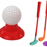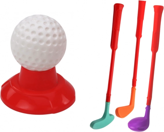 Három különböző színű fejű ütő lehetőséget biztosít a játék változatosságára és a gyerek képességeihez való igazodására. Tartalmaz továbbá két lyukat és két zászlót a valósághű golfpálya érdekében.