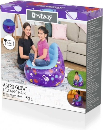 Bestway gyerek felfújható fotel LED-del, űr témájú, lila, 72 × 72 × 64 cm