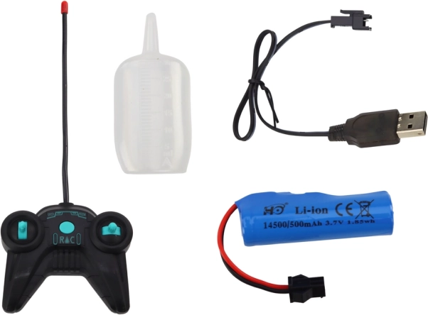 A modell strapabíró anyagokból készült a mindennapos játékhoz, és a gumiborítású abroncsoknak köszönhetően különféle felületekkel is megbirkózik – jobb tapadást és sima kanyarvételt biztosít. Az autót 3,7 V-os, újratölthető akkumulátor táplálja (a csomag tartalmazza), a töltéshez USB kábel jár. A távirányító 2× AA elemet igényel (nem tartozék).