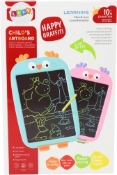 A rajzolós tablet kék árnyalatban, madárka motívummal korlátlan lehetőségeket kínál a gyermekek művészi kifejezésére. A gyermekek kifejezhetik képzeletüket rajzolással, festéssel és írással a képernyőn papír használata nélkül, ami megóvja a környezetet és megtanítja a gyermekeket az ökológiára.