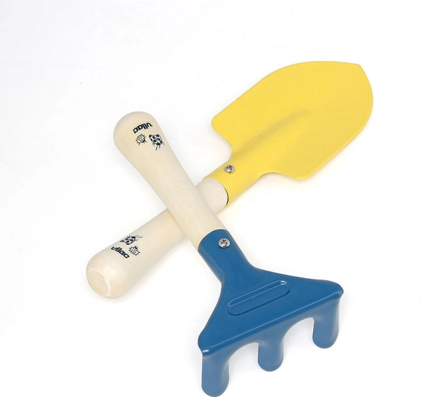 Az összes eszköz biztonságos fa fogantyúval rendelkezik, ami kényelmes és biztonságos használatot garantál a legkisebb kezek számára is.