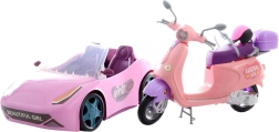 A rózsaszín autó (33 cm), a valósághű robogó (30 cm) és a kerékpár (17 cm) lehetővé teszik, hogy a babák kiránduljanak, a városban vagy a parkban közlekedjenek. Könnyen irányíthatók, és támogatják az akciódús játékot.