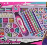 Nagy készlet kis stylistoknak, amely fejleszti a fantáziát és a finommotorikát. A praktikus fonógépnek és a gazdag, színes kiegészítőknek köszönhetően a gyerekek könnyedén alkothatnak egyedi frizurákat, gyöngyökkel és spirálokkal díszítve. Minden áttekinthető dobozban található, így egyszerű a tárolás és a szállítás.