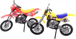 A motorok szabadon forgó kerekekkel, stabil parkolást biztosító kitámasztókkal és látványos versenymatricákkal rendelkeznek. A színösszeállítás raktárkészlettől függ, így minden csomag meglepetést tartogathat. A praktikus bliszter csomagolás ajándéknak is tökéletes.