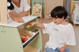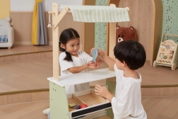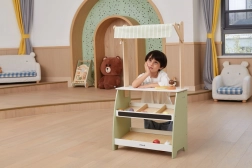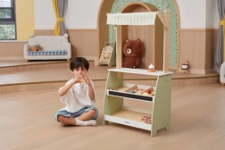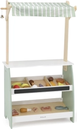 A fasátornak bőséges helye van különböző típusú játékokhoz, így kiválóan alkalmas bolt- vagy zöldségpiac játékra.