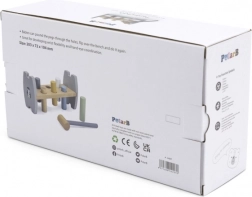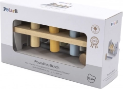 A Viga PolarB Fa játék húzókkal és kalapáccsal Montessori ideális a gyermeki koordináció és finommotorika fejlesztéséhez. A gyermekek arra vannak ösztönözve, hogy lenyomják az összes húzót a lyukakba, miközben a húzók átmennek a keret másik oldalára. Ez a tevékenység újra elvégezhető a játék megfordításával.