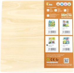 - A készlet tartalmaz egy táblát és 4 zöldség puzzle darabot.