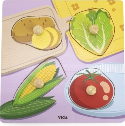 Viga fa puzzle zöldségekkel nagyszerű eszköz oktatási játékra 12 hónapos kortól. A puzzle-k úgy vannak tervezve, hogy ösztönözzék a kéz- és szemkoordinációt és fejlesszék a memóriát és logikus gondolkodást. Az egyes darabok fogantyúi révén a gyerekek könnyedén összerakhatják a zöldség darabokat a megfelelő nyílásokba.