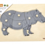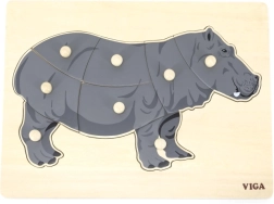 Ez a minőségi, víziló motívumos fa beillesztő a VIGA márkától ideális első kirakó a legkisebbeknek. A gombos fogantyúk a darabokon megkönnyítik a kezelést, míg a stabil fa tábla gyakori használat mellett is tartja a formáját. A játék természetes módon fejleszti a finommotorikát, a koncentrációt és a mozgások összehangolását.