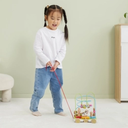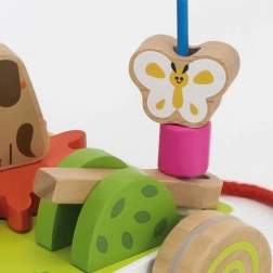 A játék 18 hónapos kortól ajánlott. A húzózsinórnak köszönhetően támogatja az első lépéseket, segít a színek és formák felismerésében, és erősíti a logikus gondolkodást. A minőségi fa és a biztonságos, nem mérgező festékek révén ideális választás a mindennapi játékhoz, otthon és útközben is.