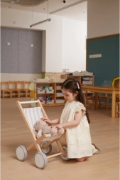 A babakocsi tolása fejleszti az egyensúlyt, a koordinációt és a szociális készségeket a kis gondozó szerepében. 18 hónapos kortól ajánlott.