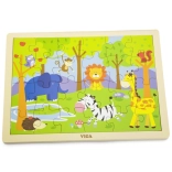 Fából készült kirakó állatkerti képpel. Összesen 24 darab. A kép mérete kb. 27,5 × 20 cm. A csomagolás mérete kb. 30 × 27 × 1 cm. Ajánlott életkor: 24 hónapos kortól.