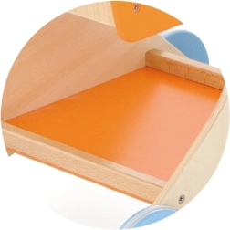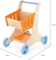 Átgondolt méretei, kb. 41,8 × 48 × 30 cm, kényelmes tolást és bőséges helyet biztosítanak a kosárban. A minőségi kidolgozás – a természetes fa és az élénk színek kombinációja – fejleszti az érzékelést, és vonzó kiegészítője a gyerekszobának.