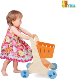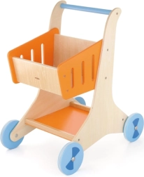 Szerezzen örömet a gyerekeknek ezzel a fa bevásárlókocsival, amely tökéletes a boltos szerepjátékhoz és a kedvenc játékok szállításához. A masszív fa váz, a kényelmes fogantyú és a négy, finoman guruló kerék miatt a kocsi stabil és a legkisebbek számára is könnyen irányítható.