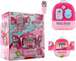 Gyönyörű nagy edénykészlet hátizsákban, ideális kis szakácsoknak. Ez a multifunkciós játék szolgálhat mint konyhai készlet, játékkészlet babával vagy praktikus hátizsák.