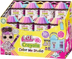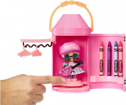 Fedezd fel a kreatív világot a L.O.L. Surprise! loves CRAYOLA Color Me Studio-val – egy szórakoztató készlet, amelyben találsz egy babát, 20 papírruhát, 4 CRAYOLA zsírkrétát és 30+ meglepetést. A ceruza alakú kapszula stúdióként, vitrinként és praktikus, hordozható csomagolásként is szolgál.