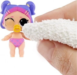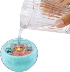 Minden L.O.L. SURPRISE! gömb babákat rejt, akik „mélyen alszanak” a kiságyban. Elég egy kis vizet önteni, és a kiságy varázslatosan feloldódik – azonnal meglátod, hány barát rejtőzött odabent. Felfedezhetsz ikerbabákat, hármasikreket, vagy akár egy kisállattal kombinált szettet is. Ezután finoman töröld le a babák szemét vízzel, és áruld el a titokzatos szemszínüket.