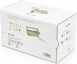 Ez a stílusos, visszafogott színvilágú, POLARB kollekcióból származó fa szerszámos ládika biztonságos és szórakoztató módon vezeti be a gyerekeket a szerszámok világába. Az elemek kézre állnak, éles élek nélküliek, és gyermekbarát, biztonságos festékkel vannak lakkozva.