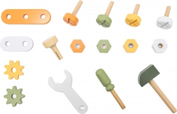 A gyerekek csavarozhatnak, kalapálhatnak és egyszerű mechanizmusokat állíthatnak össze fogaskerekekkel – mindeközben természetes módon gyakorolják az ujjak ügyességét, a türelemet és a térbeli képzelőerőt. A készlet ideális az önálló játékhoz és a közös alkotáshoz a szülőkkel.