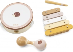 Ez a stílusos gyerek készlet a biztonságos fa kivitel és a harmonikus, sün motívumos POLARB dizájn kombinációja. A gyerekek felfedezhetik a ritmust a tamburinnal, egyszerű dallamokat játszhatnak a xilofonon, és fejleszthetik a koordinációt a maracasszal. Ideális az első zenei élményekhez otthon és az óvodában.